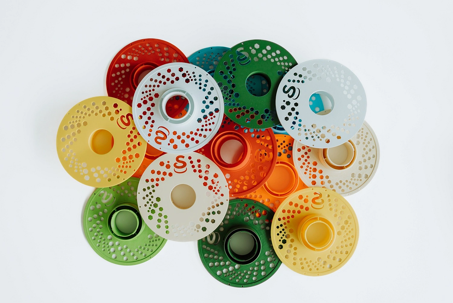 Spool-less coils are compact and easier to store in bulk. The refill spool holder is only needed during actual printing, allowing users to keep their workspace more organized.